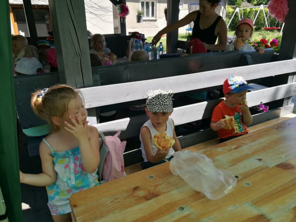 Wycieczka naszych maluszków. Gr. Smerfy i gr. Krasnale.